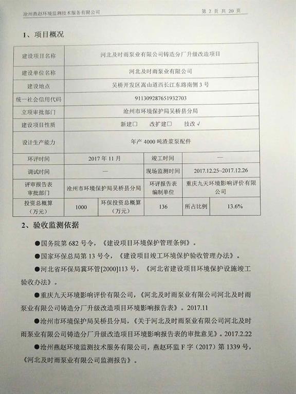 河北及時(shí)雨泵業(yè)有限公司鑄造分廠升級(jí)改造項(xiàng)目竣工環(huán)境保護(hù)驗(yàn)收意見(jiàn)公示
